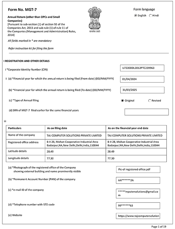 Form No. MGT-7